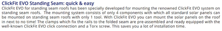 Please refer to "Application Note Clickfit EVO Standing Seam: Quick and Easy" document for product use.